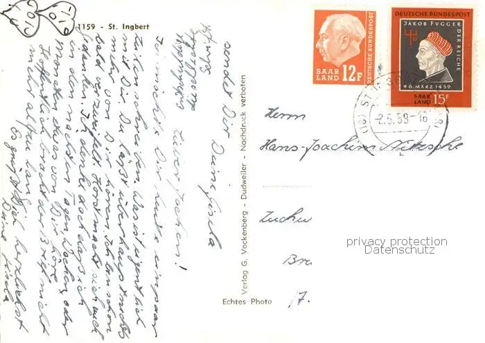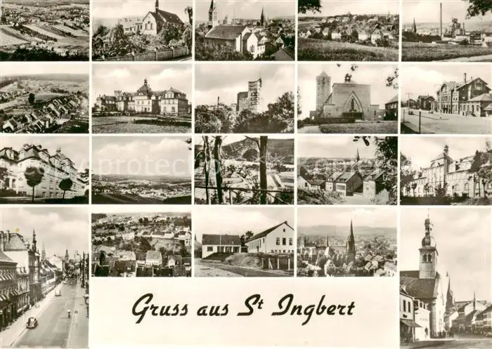 73849543 St_Ingbert Orts und Teilansichten Kirchen Panorama St_Ingbert postalisch gelaufen 1959 Erhaltung siehe scans [WerneD78] [WernPID7 ]
