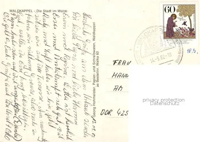73849546 Waldkappel Ortsansicht mit Kirche Waldkappel postalisch gelaufen 1982 Erhaltung siehe scans [WerneD78] [WernPID7 ]