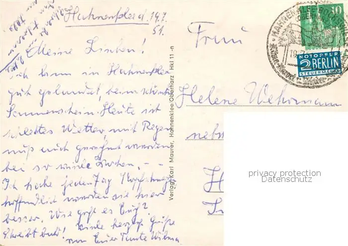 73849621 Hahnenklee-Bockswiese_Harz Panorama Hahnenklee-Bockswiese postalisch gelaufen 1951 Erhaltung siehe scans [WerneD78] [WernPID7 ]