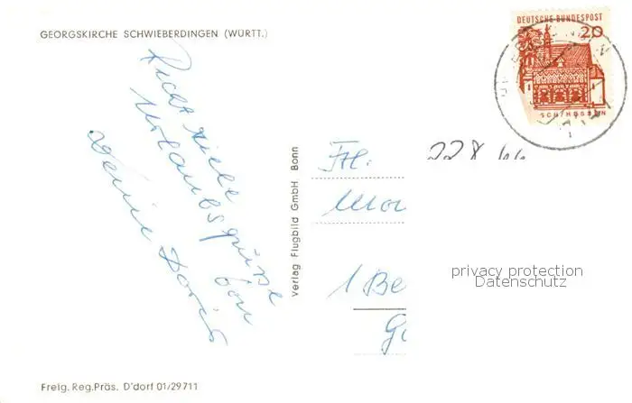 73849768 Schwieberdingen Georgskirche Fliegeraufnahme Schwieberdingen postalisch gelaufen nach 1965 Erhaltung siehe scans [WerneD78] [WernPID7 ]