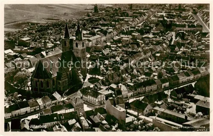 73849860 Jueterbog Stadtzentrum Kirche Jueterbog postalisch gelaufen 1938 Fliegeraufnahme Erhaltung siehe scans [FriedD77] Fliegeraufnahme[Frierer ]