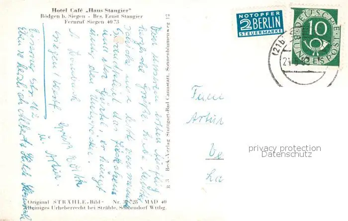 73849861 Roedgen_Siegen Hotel Café Haus Stangier Original Straehle Bild Nr. 31728 Roedgen Siegen postalisch gelaufen 1953 Fliegeraufnahme Erhaltung siehe scans [FriedD77] Fliegeraufnahme[Frierer ]