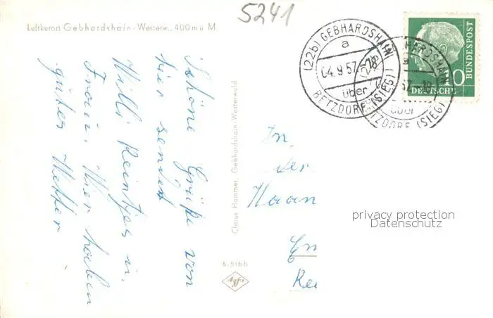 73849865 Gebhardshain Fliegeraufnahme Gebhardshain postalisch gelaufen 1957 Erhaltung siehe scans [FriedD77] [Frierer ]