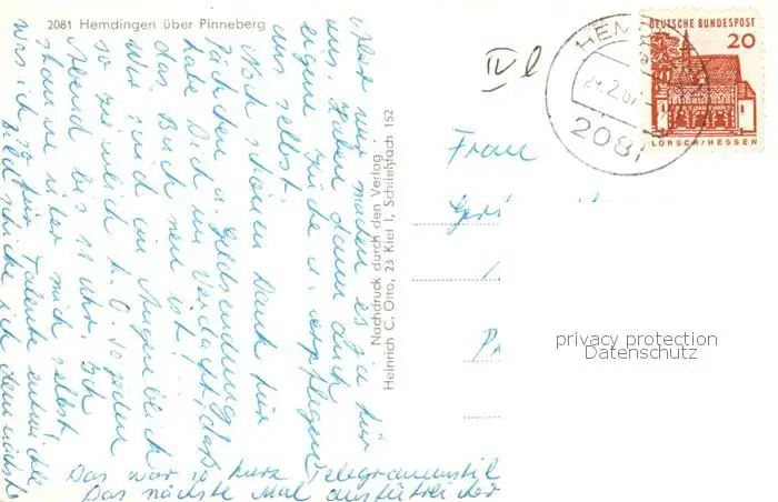 73849974 Hemdingen Ortsansichten Hemdingen postalisch gelaufen 1967 Erhaltung siehe scans [FriedD77] [Frierer ]