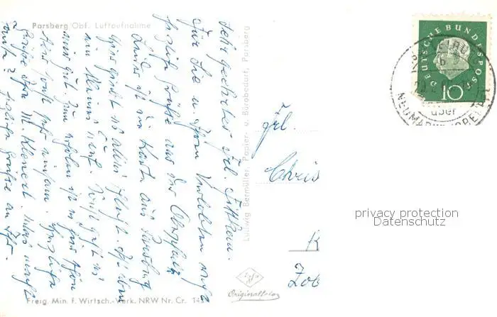 73850105 Parsberg_Oberpfalz Fliegeraufnahme Parsberg Oberpfalz postalisch gelaufen 1960 Erhaltung siehe scans [FriedD77] [Frierer ]