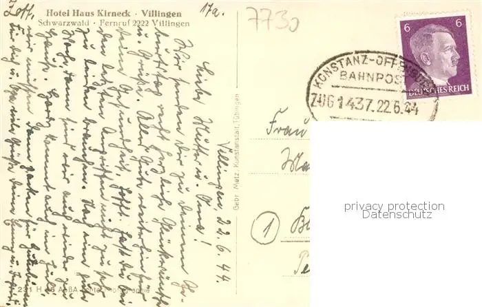 73850207 Villingen_-Schwenningen Hotel Haus Kirneck postalisch gelaufen 1944 Bahnpost Erhaltung siehe scans [WerneD78] Bahnpost[WernPID7 ]