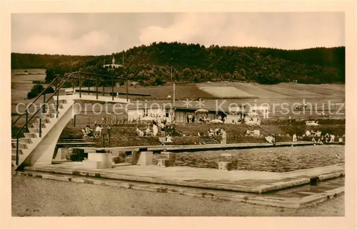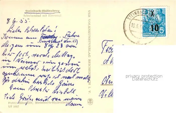 73850242 Steinbach_Hallenberg Schwimmbad mit Ehrenmal Steinbach_Hallenberg postalisch gelaufen 1955 Erhaltung siehe scans [WerneD78] [WernPID7 ]