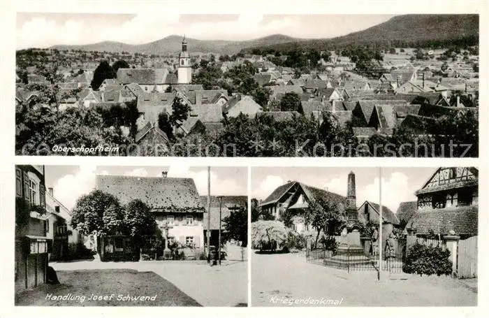 AK / Ansichtskarte 73850391 Oberschopfheim_Friesenheim Stadtpanorama Handlung Josef Schwend Kriegerdenkmal