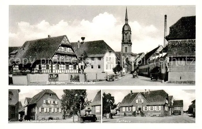 AK / Ansichtskarte 73850400 Schuttern_Friesenheim Hauptstrasse Kirche Gasthaus zur Linde Rathaus