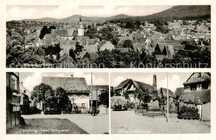 AK / Ansichtskarte 73850403 Oberschopfheim_Friesenheim Stadtpanorama Handlung Josef Schwend Kriegerdenkmal