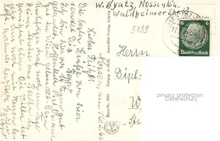 73850427 Nossen Original Fliegeraufnahme Nossen postalisch gelaufen 1942 Erhaltung siehe scans [FriedD77] [Frierer ]