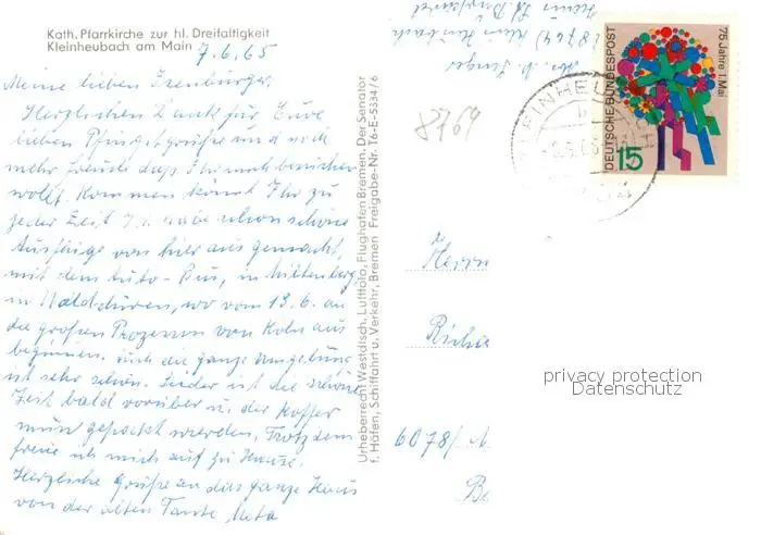 73850738 Kleinheubach Kath Pfarrkirche zur hl Dreifaltigkeit Fliegeraufnahme Kleinheubach postalisch gelaufen 1965 Erhaltung siehe scans [FriedD77] [Frierer ]