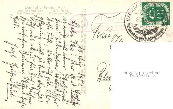 73850803 Fleckl_Oberwarmensteinach Gasthof Pension Voit postalisch gelaufen 1953 Erhaltung siehe scans [FriedD77] [Frierer ]
