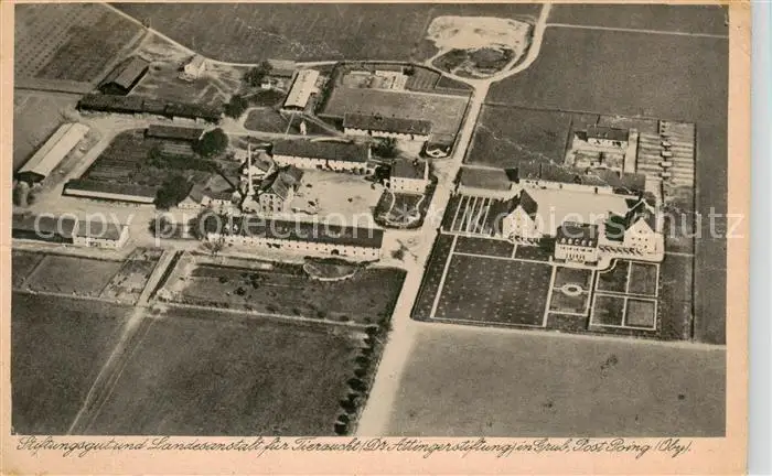 73850824 Grub_Poing Stiftungsgut und Landesanstalt fuer Tierzucht Deutsche Attingerstiftung Grub_Poing postalisch gelaufen 1931 Fliegeraufnahme Erhaltung siehe scans [FriedD77] Fliegeraufnahme[Frierer ]