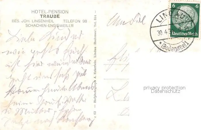 73850948 Schachen_Lindau Hotel Pension Traube Schachen Lindau postalisch gelaufen 1934 Erhaltung siehe scans [WerneD78] [WernPID7 ]