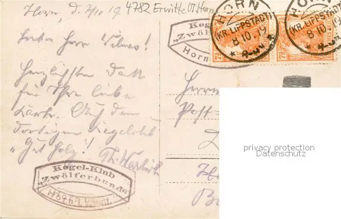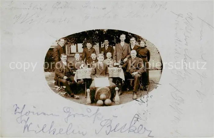 73851010 Erwitte Kegel Klub Zwoelferrunde Gruppenbild Erwitte postalisch gelaufen 1919 Erhaltung siehe scans [WerneD78] [WernPID7 ]