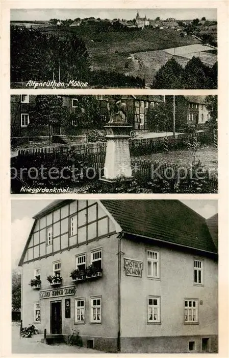 73851016 Moehne_Belecke Altenruethen Kriegerdenkmal Gasthaus Schoen postalisch gelaufen 1938 Erhaltung siehe scans [WerneD78] [WernPID7 ]