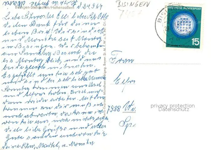 73851238 Bisingen Fliegeraufnahme Bisingen postalisch gelaufen 1964 Erhaltung siehe scans [WerneD78] [WernPID7 ]