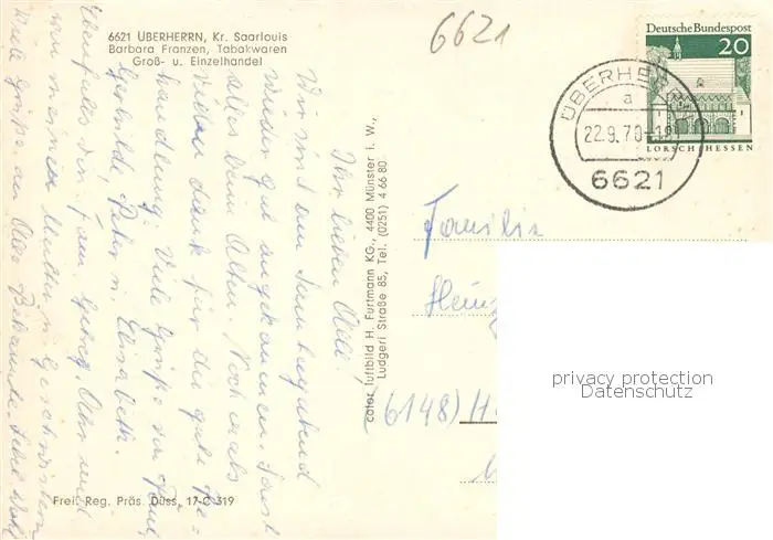 73851242 ueberherrn Fliegeraufnahme ueberherrn postalisch gelaufen 1970 Erhaltung siehe scans [WerneD78] [WernPID7 ]