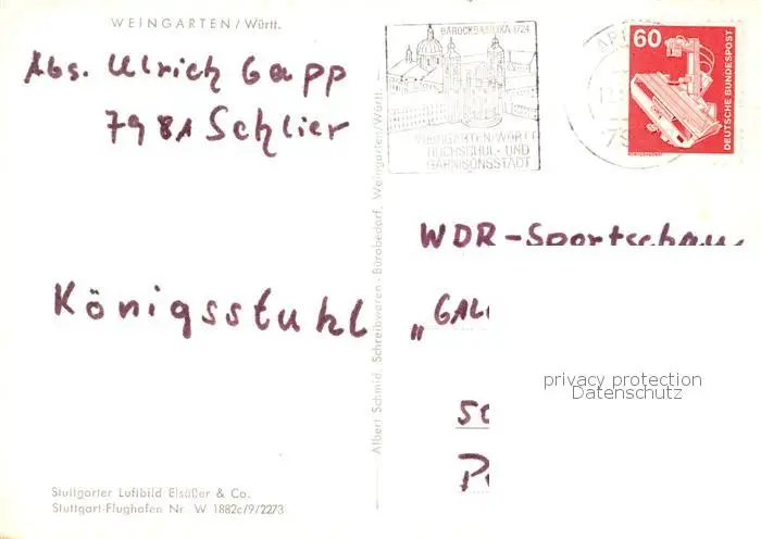 73851244 Weingarten_Wuerttemberg Fliegeraufnahme Weingarten Wuerttemberg postalisch gelaufen nach 1965 Erhaltung siehe scans [WerneD78] [WernPID7 ]