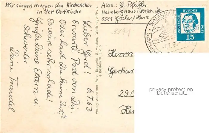73851390 Wolfshagen_Harz Heimberghaus Wolfshagen Harz postalisch gelaufen 1963 Erhaltung siehe scans [FriedD77] [Frierer ]