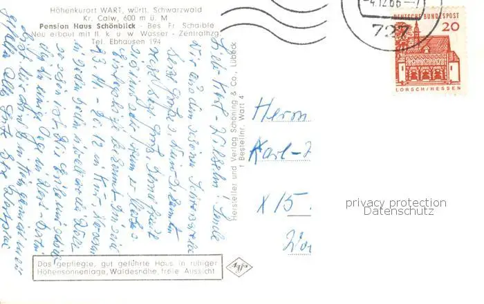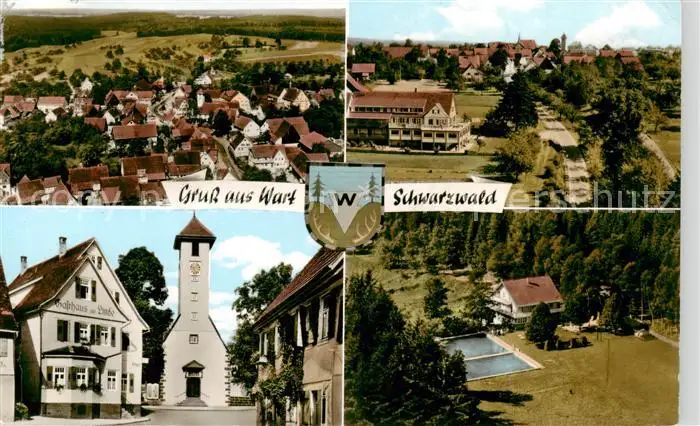 73851720 Wart_Altensteig_Schwarzwald Panorama Hoehenkurort Luftaufnahmen Pension Haus Schoenblick Freibad postalisch gelaufen 1966 Erhaltung siehe scans [FriedD77] [Frierer ]