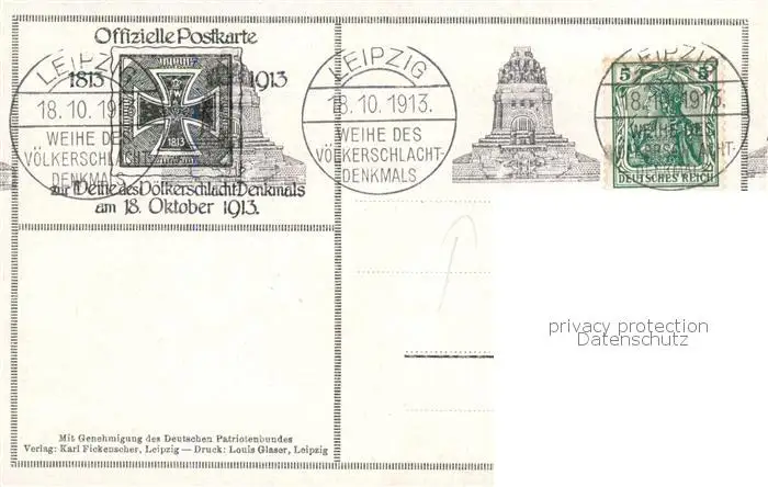 73851759 Leipzig Voelkerschlachtdenkmal Kuenstlerkarte Offizielle Postkarte Stempel Leipzig postalisch gelaufen 1913 Erhaltung siehe scans [FriedD77] [Frierer ]