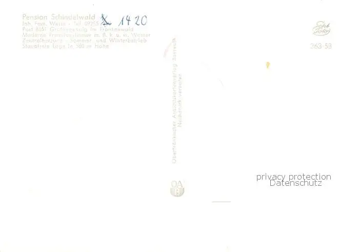 73851920 Grafengehaig Pension Schindelwald Grafengehaig postalisch nicht gelaufen nach 1965 Erhaltung siehe scans [WerneD78] [WernPID7 ]