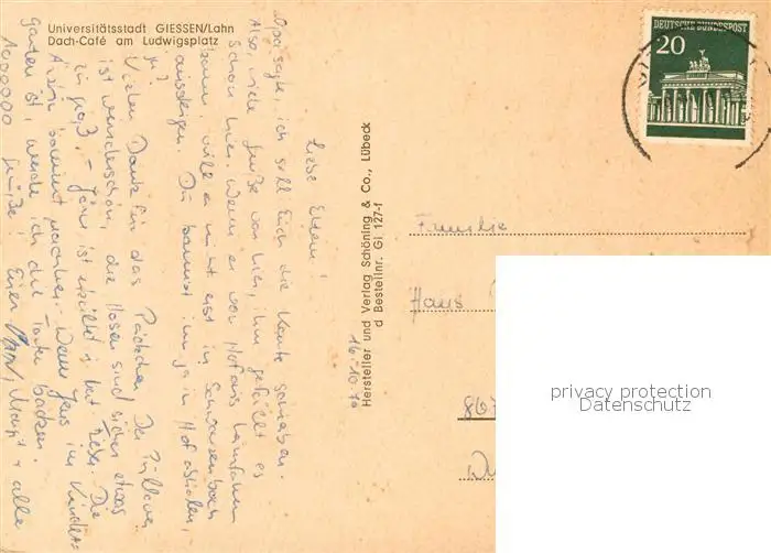 73851934 Giessen__Lahn Dach Cafe am Ludwigsplatz postalisch gelaufen 1970 Erhaltung siehe scans [WerneD78] [WernPID7 ]