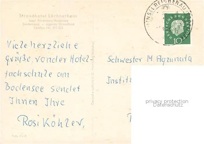 73852013 Insel_Reichenau_Bodensee Strandhotel Loechnerhaus Fliegeraufnahme postalisch gelaufen 1961 Erhaltung siehe scans [WerneD78] [WernPID7 ]