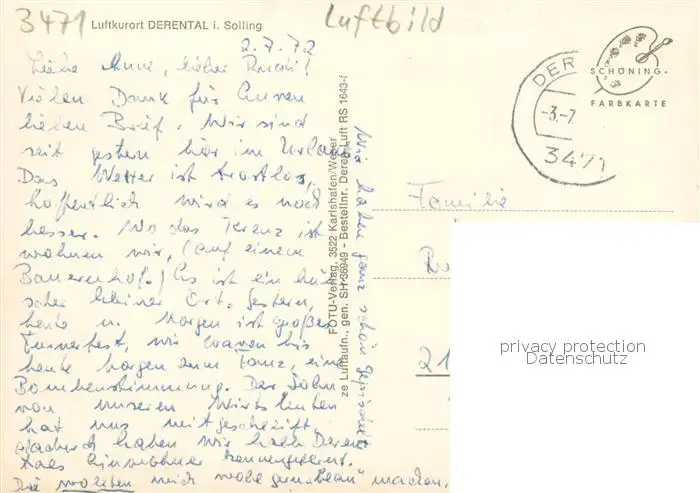 73852197 Derental Panorama Luftkurort Derental postalisch gelaufen 1972 Fliegeraufnahme Erhaltung siehe scans [FriedD77] Fliegeraufnahme[Frierer ]