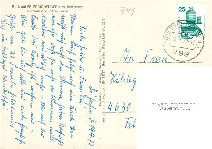 73852207 Friedrichshafen_Bodensee mit Siedlung Kitzenwiese Friedrichshafen Bodensee postalisch gelaufen 1972 Fliegeraufnahme Erhaltung siehe scans [FriedD77] Fliegeraufnahme[Frierer ]