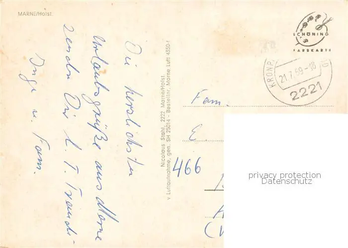 73852222 Marne_Holstein Fliegeraufnahme Marne_Holstein postalisch gelaufen 1969 Erhaltung siehe scans [FriedD77] [Frierer ]