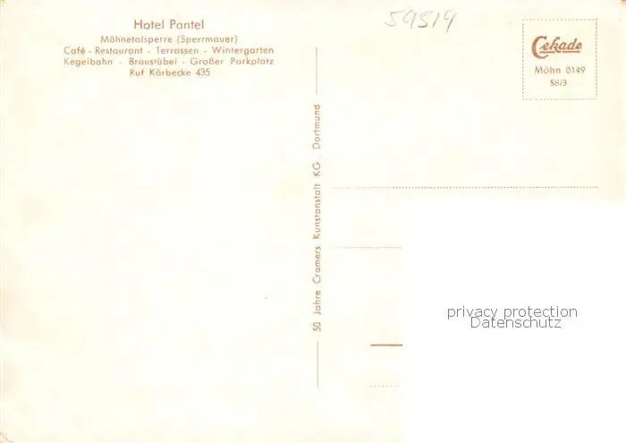 73852232 Moehnetalsperre Hotel Pantel Moehnetalsperre postalisch nicht gelaufen 1958 Erhaltung siehe scans [FriedD77] [Frierer ]