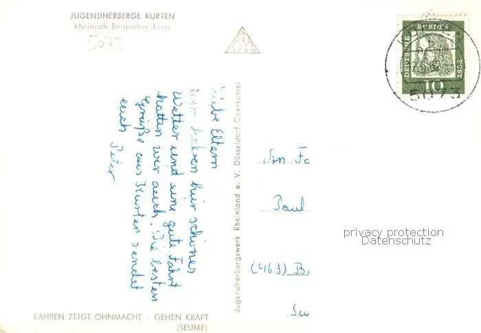 73852255 Kuerten Jugendherberge Kuerten postalisch gelaufen 1962 Erhaltung siehe scans [FriedD77] [Frierer ]