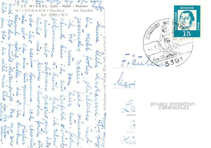 73852260 Wildemann_Harz Café Hotel Pension St. Nickel Springbrunnen Konzertpavillon postalisch gelaufen 1965 Erhaltung siehe scans [FriedD77] [Frierer ]
