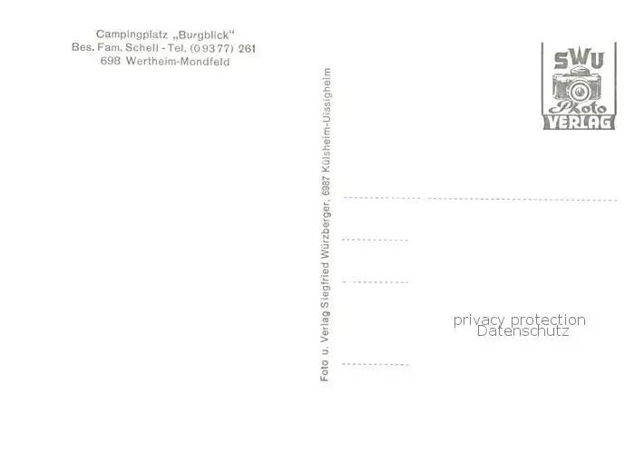 73852263 Mondfeld_Wertheim Campingplatz Burgblick Mainpartie Oase der Stille Raststaette postalisch nicht gelaufen 1921-1965 Erhaltung siehe scans [FriedD77] [Frierer ]