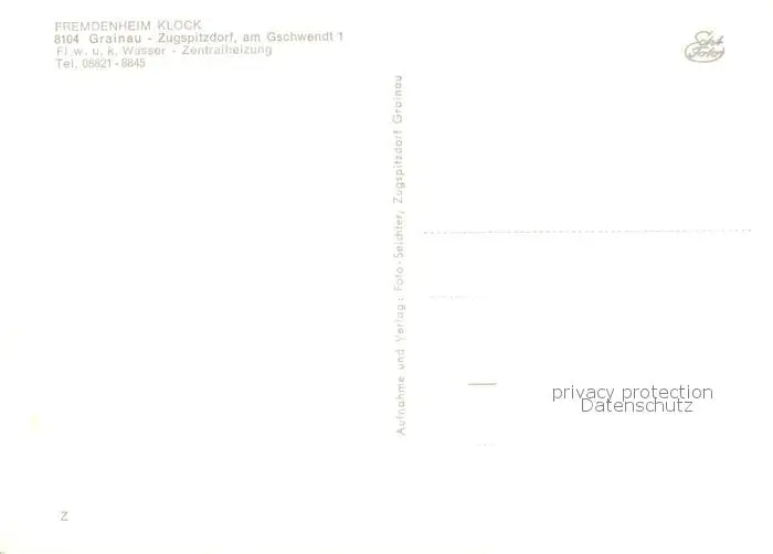 73852277 Grainau Fremdenheim Kloeck Zugspitzdorf Grainau postalisch nicht gelaufen nach 1965 Erhaltung siehe scans [FriedD77] [Frierer ]