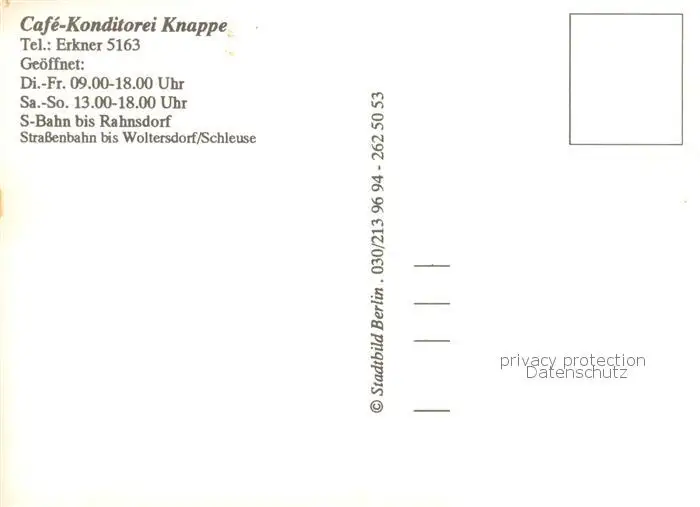 73852299 Woltersdorf_Erkner Café Konditorei Knappe Woltersdorf Erkner postalisch nicht gelaufen nach 1965 Erhaltung siehe scans [FriedD77] [Frierer ]