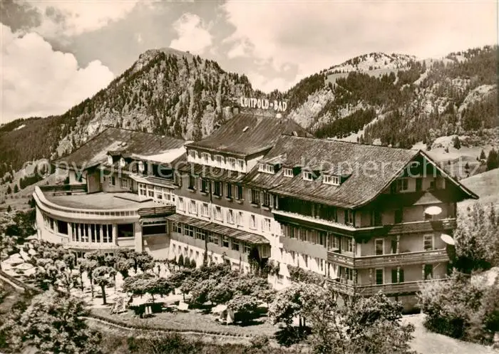 AK / Ansichtskarte 73852305 Bad_Hindelang Kurhotel Schwefelbad Luitpoldbad mit Hirschberg und Spiesser Allgaeuer Alpen Bad_Hindelang