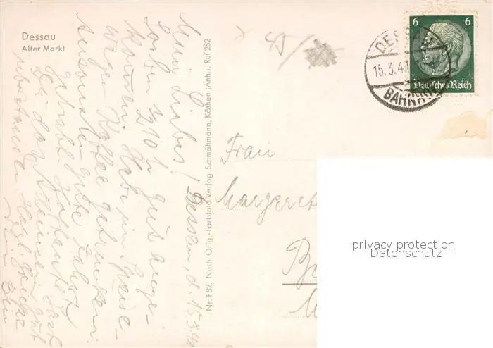 73852434 Dessau-Rosslau Alter Markt Dessau-Rosslau postalisch gelaufen 1941 Erhaltung siehe scans [WerneD78] [WernPID7 ]