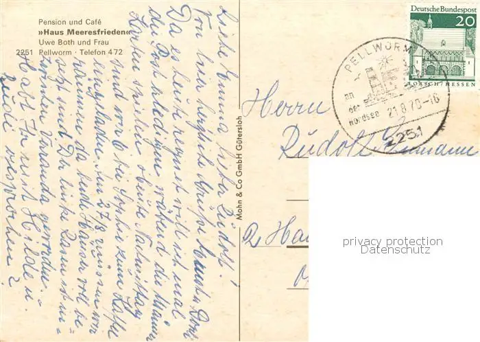 73852470 Pellworm Pension Café Haus Meeresfrieden Leuchtturm Pellworm postalisch gelaufen 1970 Erhaltung siehe scans [FriedD77] [Frierer ]