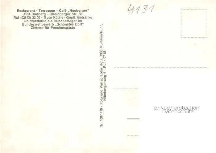 73852496 Budberg_Moers_Niederrhein Restaurant Terrassen Cafe Heuberger Gaststube postalisch nicht gelaufen nach 1965 Erhaltung siehe scans [WerneD78] [WernPID7 ]