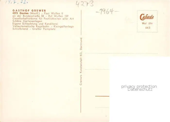 73852517 Deuten Gasthof Grewer Gastraeume Terrasse Deuten postalisch nicht gelaufen nach 1965 Erhaltung siehe scans [WerneD78] [WernPID7 ]