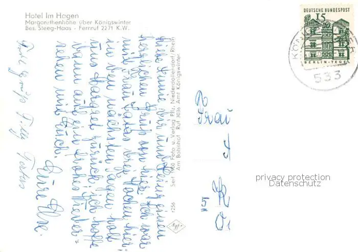 73852558 Margarethenhoehe_Koenigswinter Hotel Im Hagen oelberg Margarethenhoehe postalisch gelaufen 1965 Erhaltung siehe scans [WerneD78] [WernPID7 ]