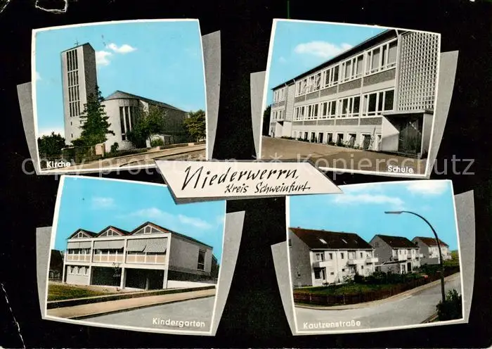 73852597 Niederwerrn Kirche Schule Kindergarten Kautzenstrasse Niederwerrn postalisch gelaufen nach 1965 Erhaltung siehe scans [WerneD78] [WernPID7 ]