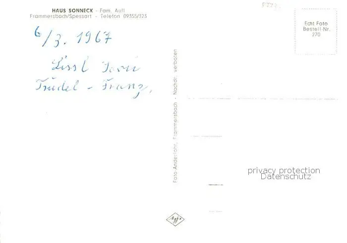 73852619 Frammersbach Haus Sonneck Gaststube Frammersbach postalisch nicht gelaufen 1967 Erhaltung siehe scans [WerneD78] [WernPID7 ]