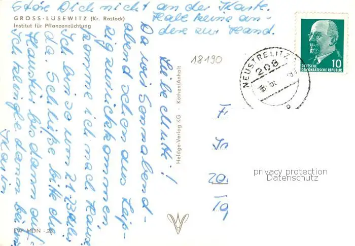 73852677 Gross_Luesewitz Institut fuer Pflanzenzuechtung Gross Luesewitz postalisch gelaufen 1967 Erhaltung siehe scans [FriedD77] [Frierer ]