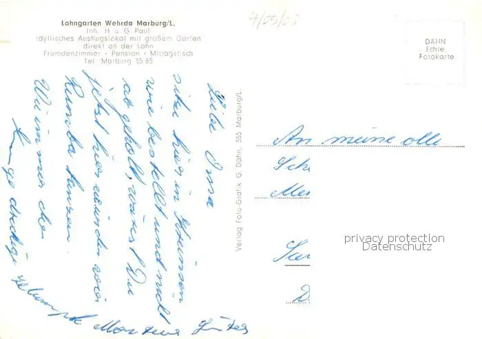 73852700 Marburg_Lahn Lahngarten Wehrda Ausflugslokal an der Lahn Marburg_Lahn postalisch nicht gelaufen nach 1965 Erhaltung siehe scans [FriedD77] [Frierer ]
