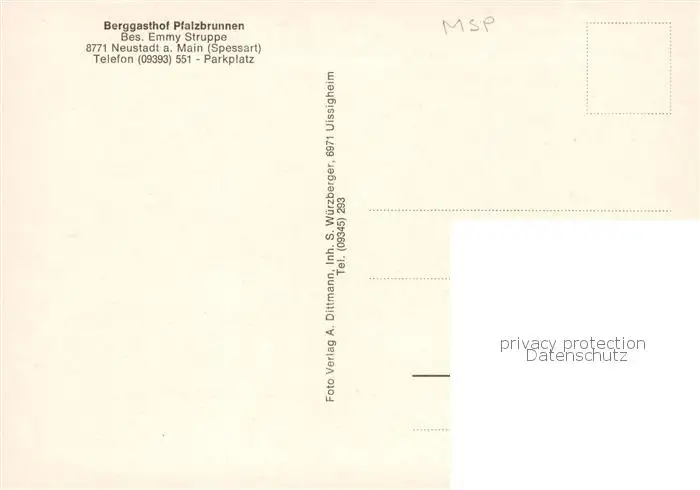 73852735 Neustadt_Main Berggasthof Pfalzbrunnen im Spessart Parkplatz Neustadt_Main postalisch nicht gelaufen nach 1965 Erhaltung siehe scans [FriedD77] [Frierer ]